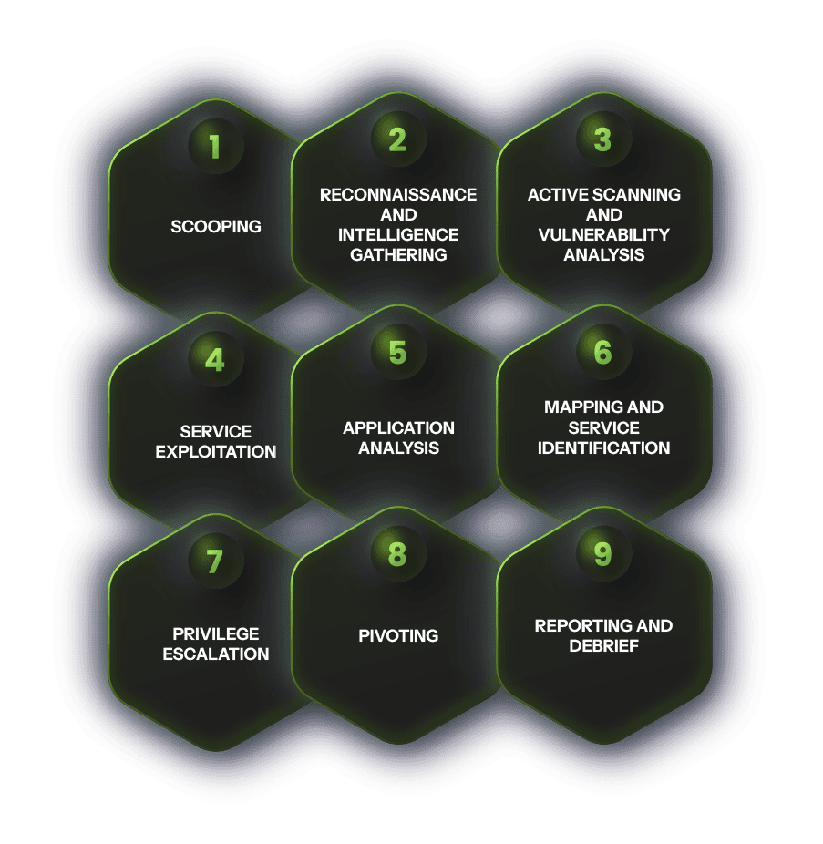 Redscan’s security testing services are based on a systematic approach to vulnerability indication and reporting. Our advanced pantest methodology include :